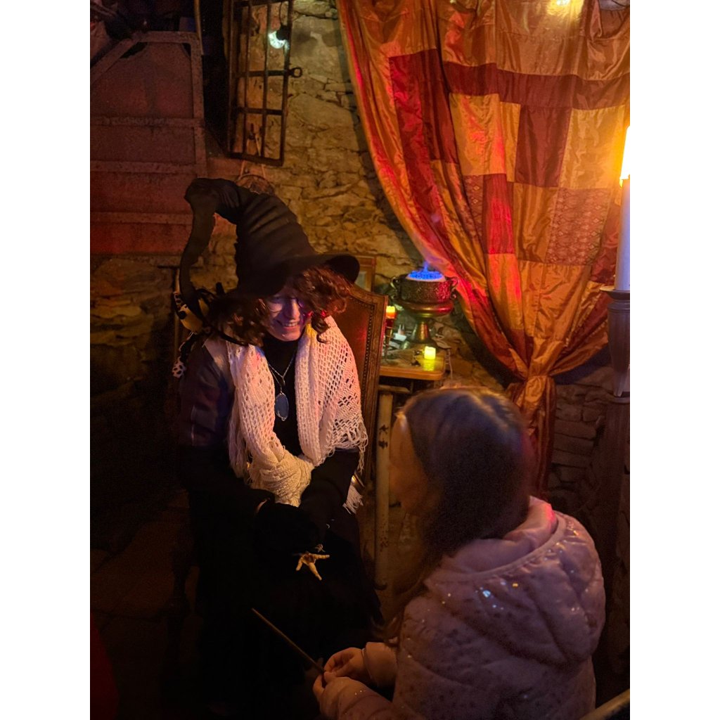Nejprve si děti půjdou vybrat správnou kouzelnickou hůlku (ta už vám pak zůstane napořád), poté projedou s vozíkem nástupištěm 9 3/4, a octnou se přímo před branami kouzelnické školy.